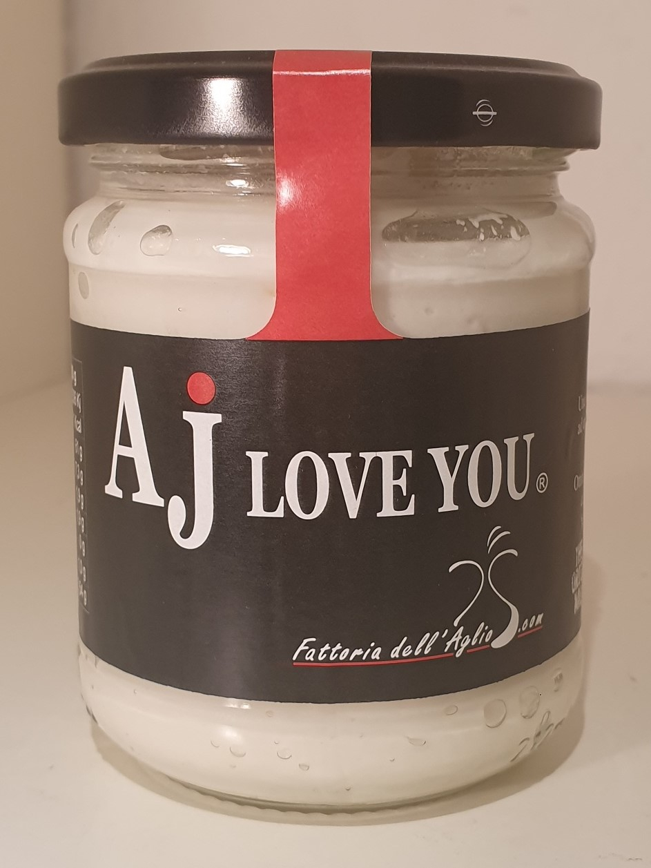 Auf piemontesisch heißt der Knoblauch “Aj”, daher das Wortspiel mit “Aj love you”.